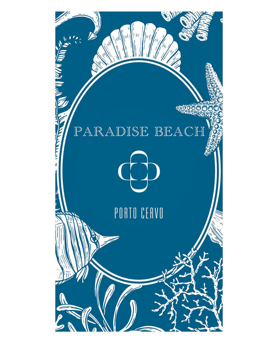 Telo mare in microfibra stampata con pochette coordinata.