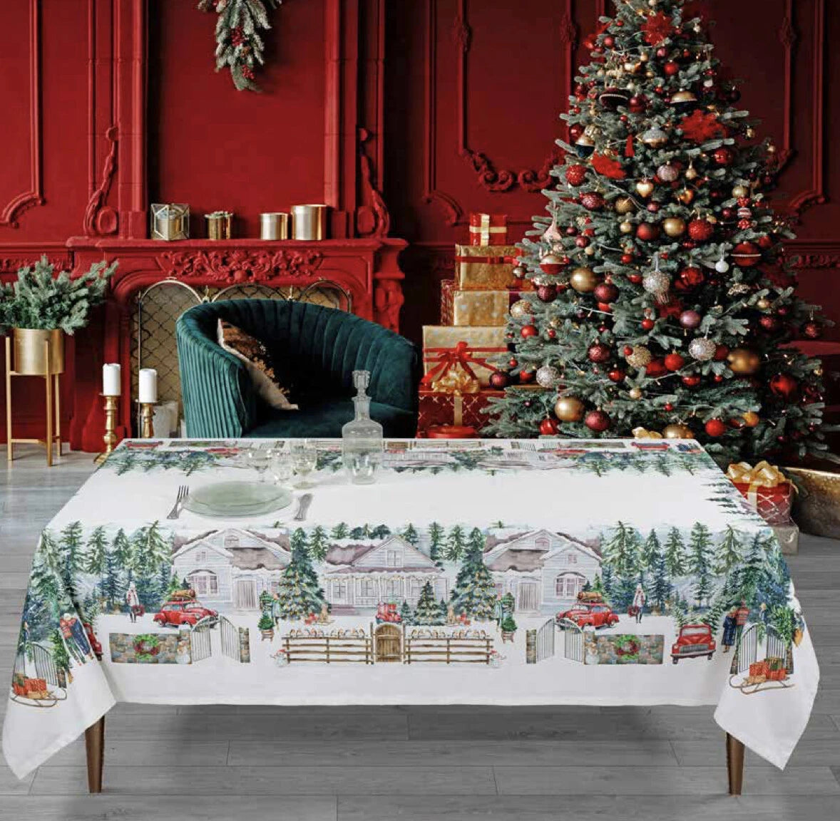 Cavalieri piazza pitti Tovaglia in cotone stampato Christmas Village 180 x 280