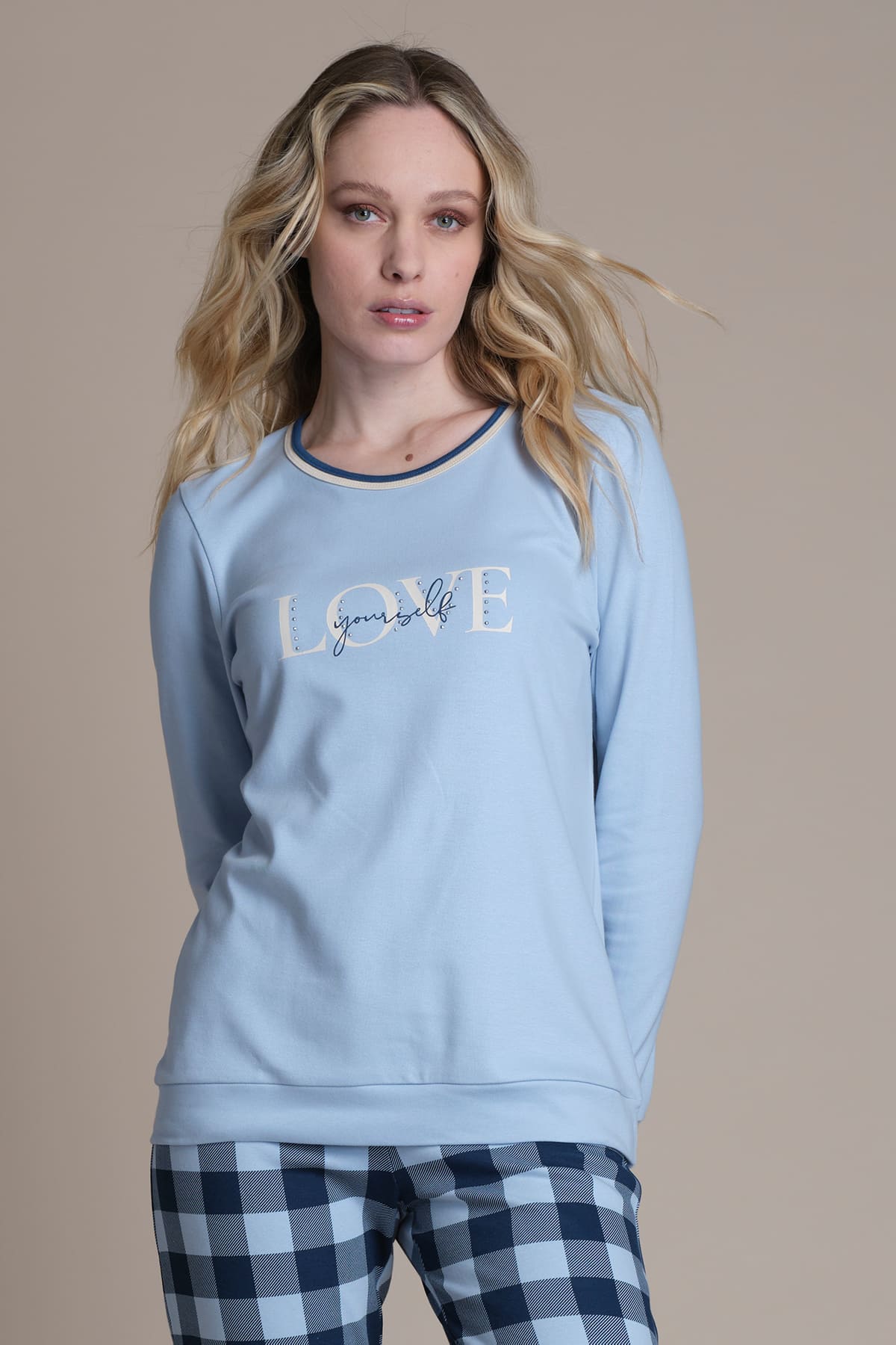 Pigiama celeste con pantaloni a quadri - Pepita 9715