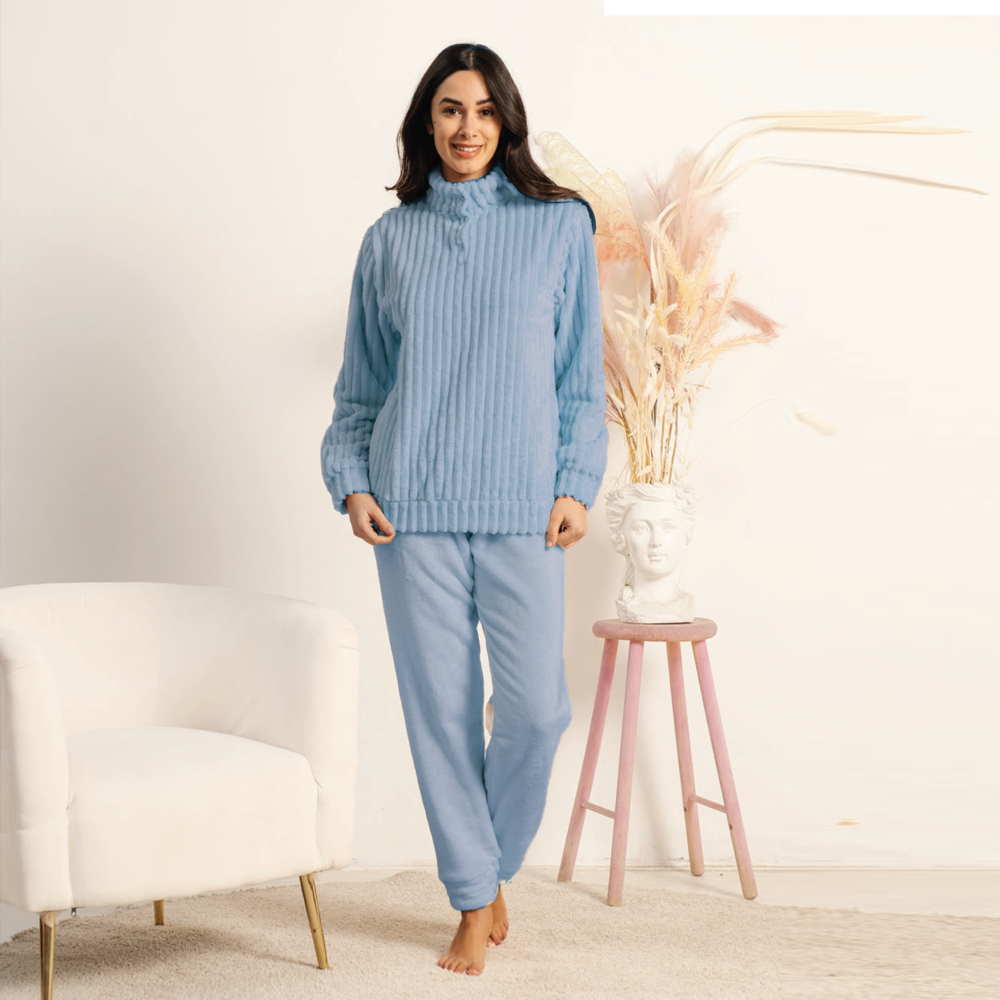 Entra nel mondo dei pigiami donna invernali, dove comfort e calore si uniscono a uno stile raffinato. La nostra selezione offre una vasta gamma di pigiami realizzati con tessuti morbidi e avvolgenti come cotone, pile e flanella, ideali per affrontare le notti più fredde. Ogni pigiama è pensato per garantire libertà di movimento senza rinunciare all’eleganza, grazie a dettagli curati e design moderni. Scegli tra una varietà di modelli e fantasie per un look casual-chic anche a casa. Perfetti per chi cerca calore e comfort senza compromessi.