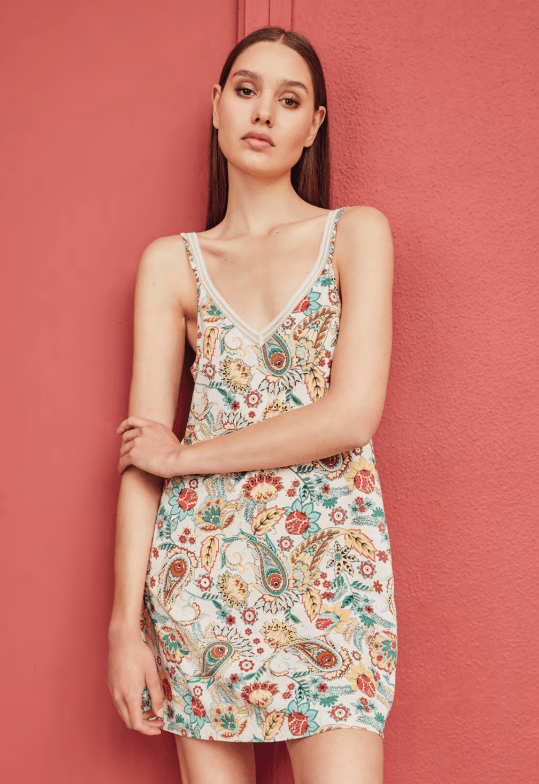 Camicia da notte con spalline a stampa floreale con dettaglio in pizzo a contrasto sullo scollo e sulle spalline. Abbinalo al suo set di lingerie abbinato.
