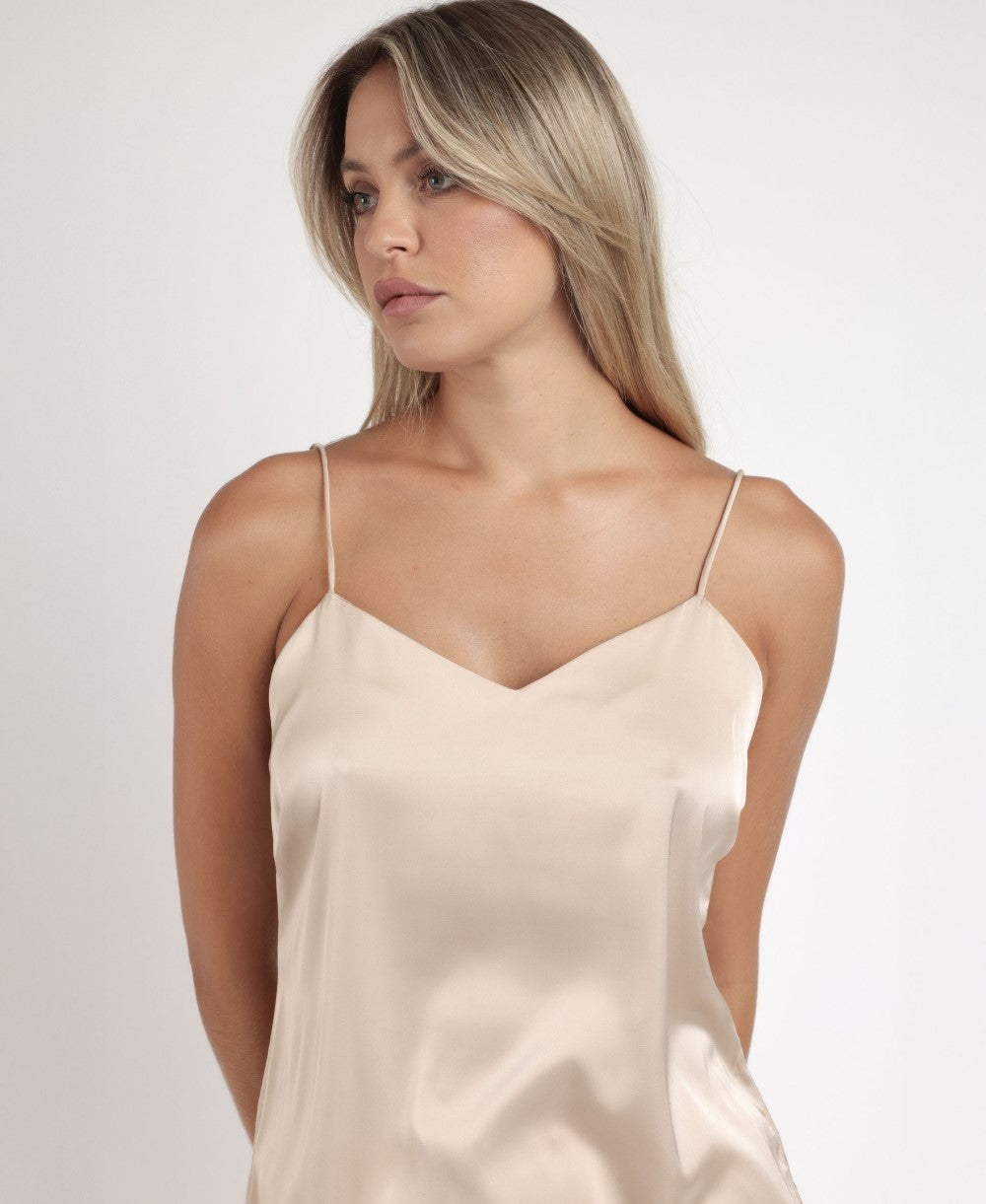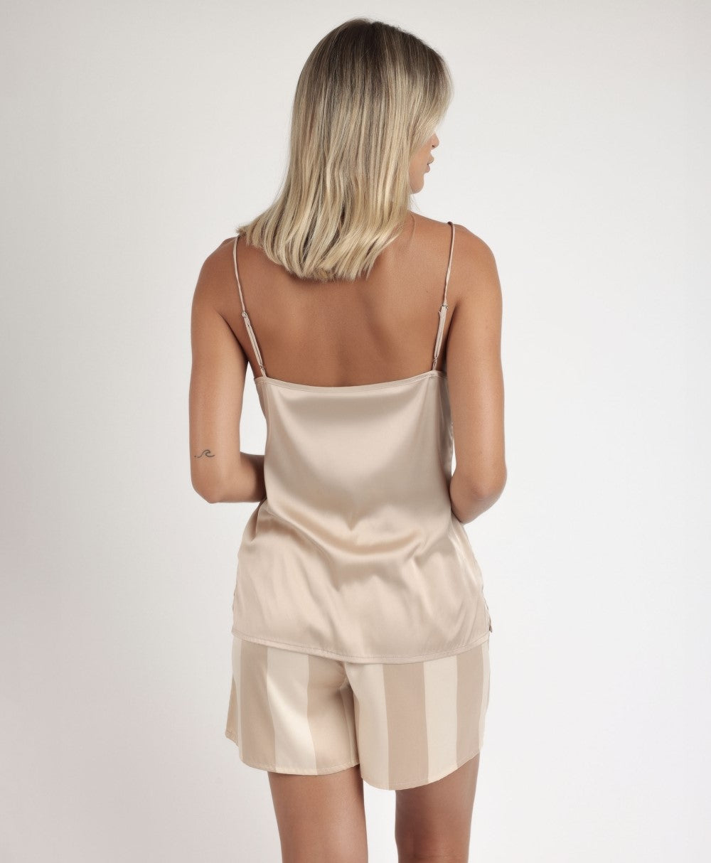 Pigiama in tessuto satinato, con spalline, scollo a V e pantaloncini.