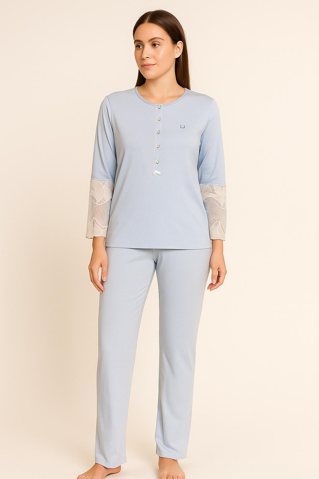 Liu Jo Pigiama da notte donna art. DL0102 in viscosa Manica corta Perla / Azzurro
