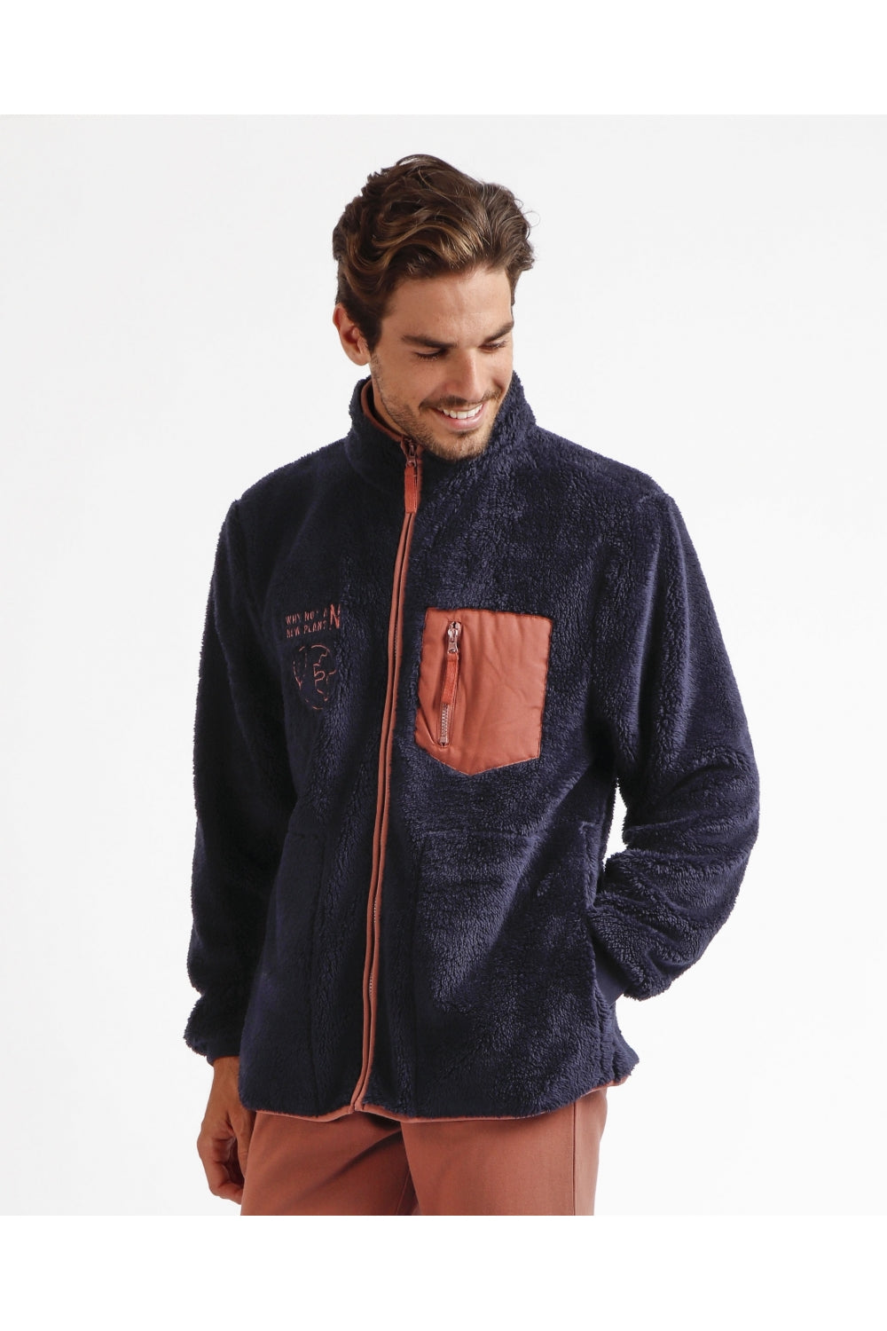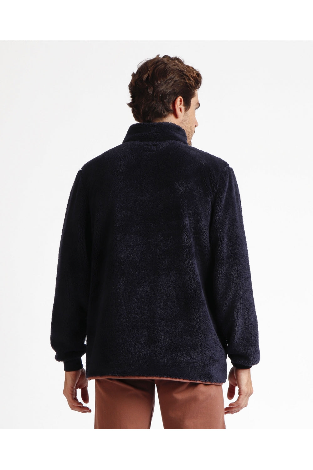 Vestaglia speciale in tessuto shearling, colore navy, con tasche.