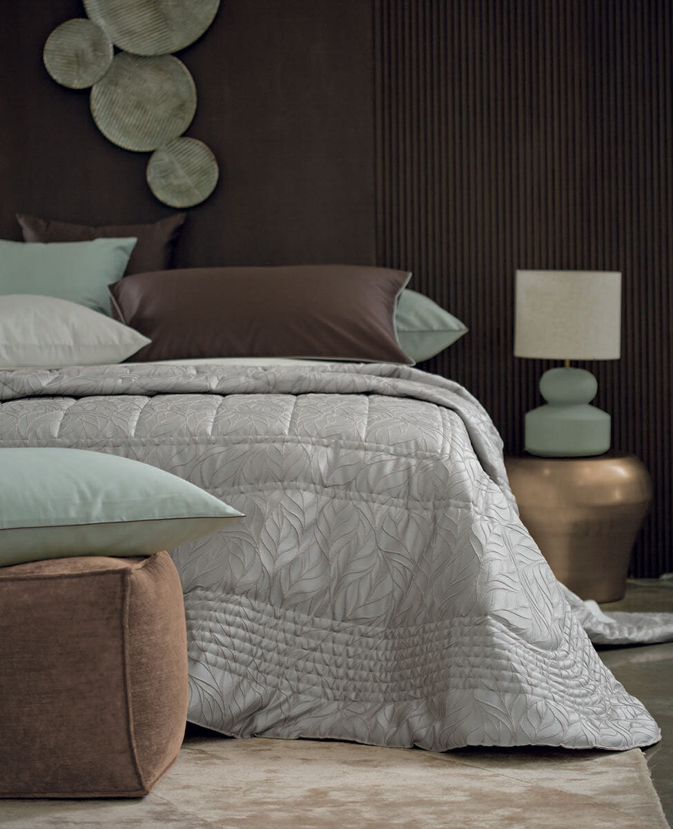 Elegante copriletto trapuntato matrimoniale con trama jacquard.
