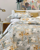 Fresco copriletto matrimoniale trapuntato in percalle di cotone con stampa all over.