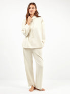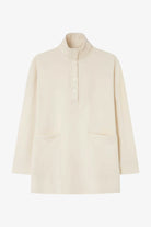 Felpa oversize con collo ampio e bottoni a clip con tasche laterali in pile fine e leggermente elasticizzato, che rende il capo più leggero e femminile.