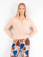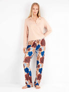 Pigiama in maglia extra morbido con camicia liscia con colletto a camicia con ampio bottone e pantaloni stampa floreali annodati in vita