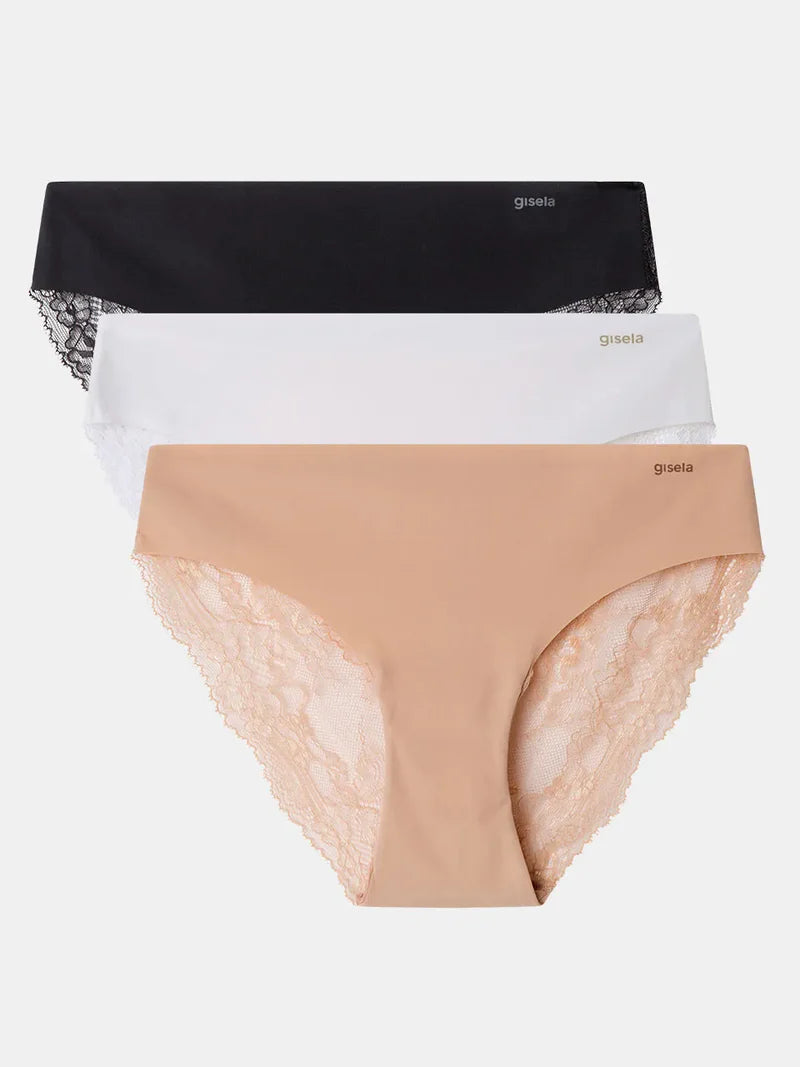 La linea Undies di Gisela è caratterizzata da uno slip donna composta da una microfibra morbida e leggera , tassello anallergico in cotone. Lo slip donna a taglio laser e senza cuciture risulta utile sotto abiti morbidi per non far vedere le cuciture e non creare forme indesiderate.