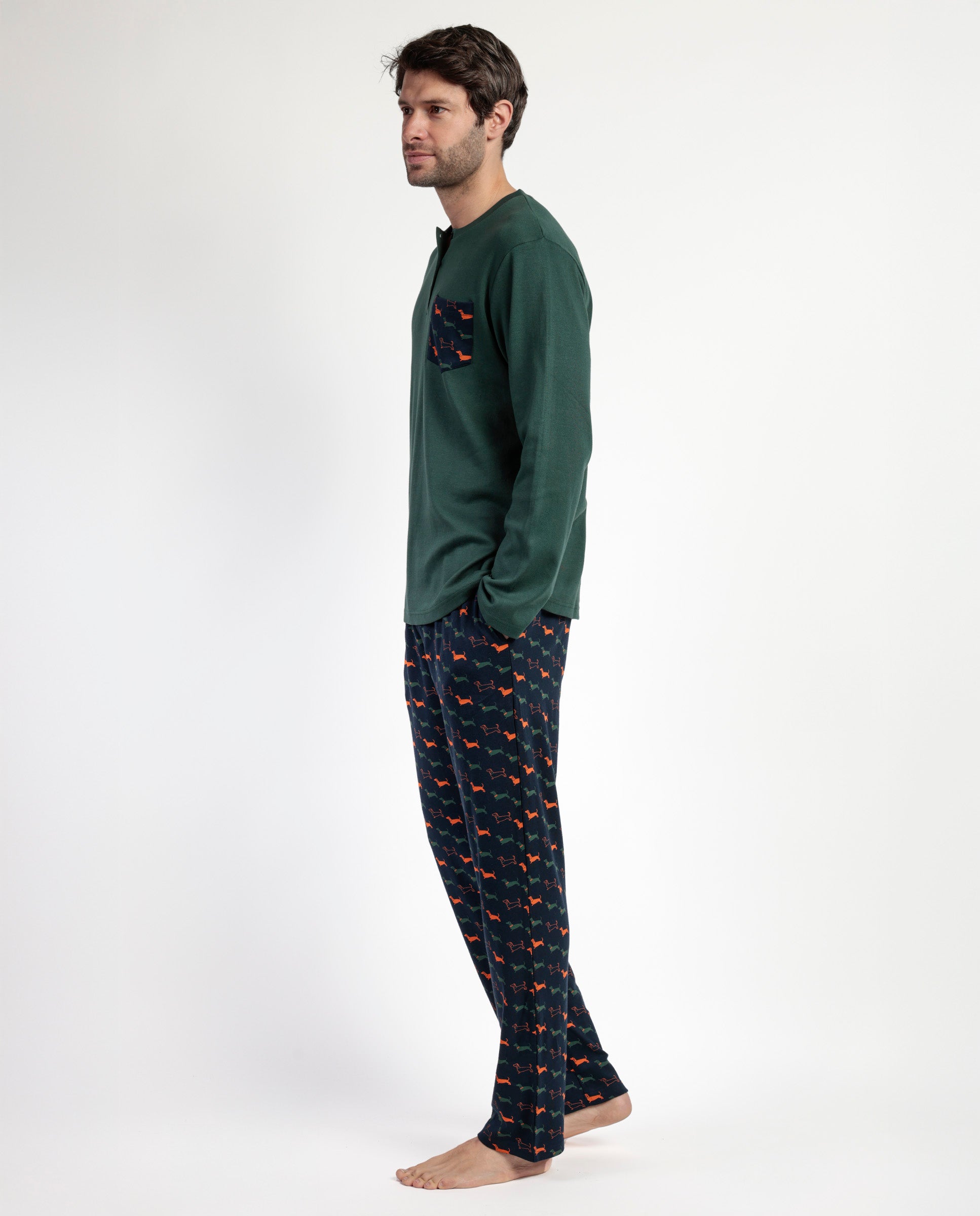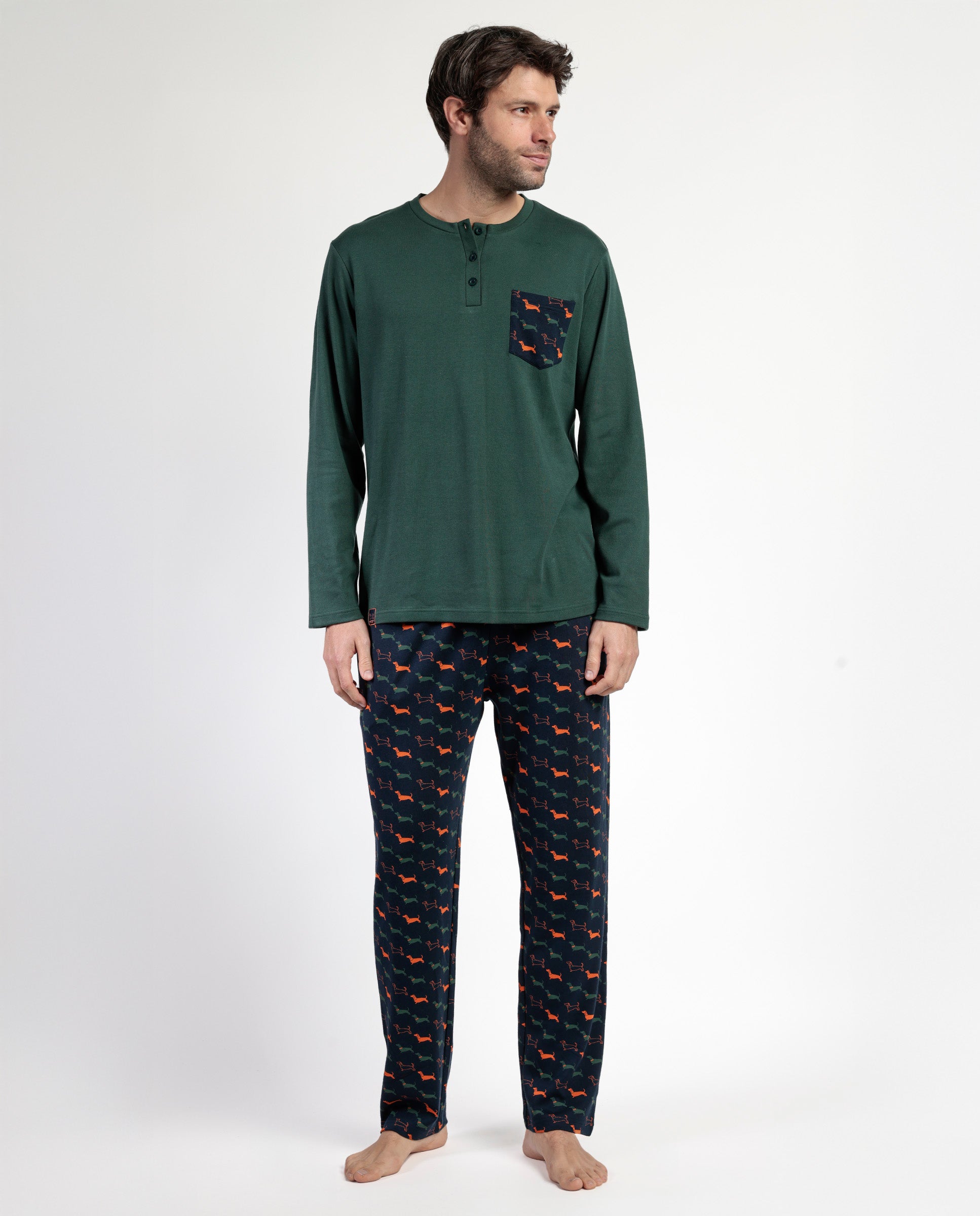 Comodo e versatile, questo pigiama da uomo è realizzato in caldo cotone, ideale per affrontare le stagioni più fredde con morbidezza e calore. La maglia a maniche lunghe si abbina ai pantaloni con elastico in vita, assicurando una vestibilità pratica e confortevole. Perfetto per chi cerca qualità, comfort e uno stile semplice ma curato nei momenti di relax e durante il riposo.