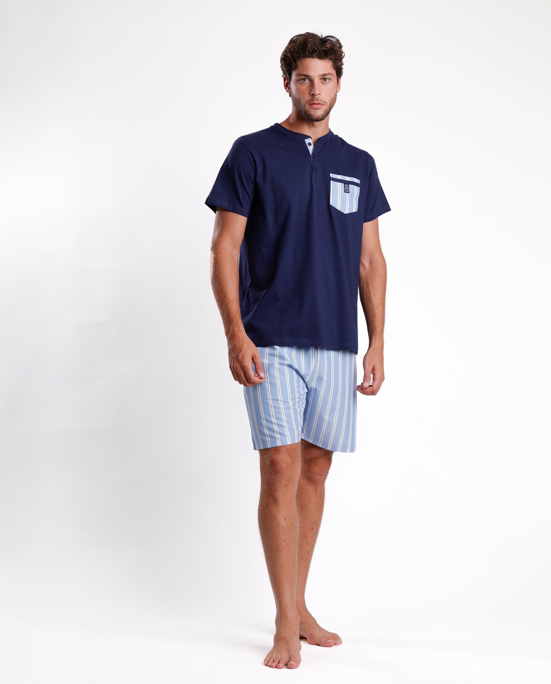 kurze passende Hose und halbärmeliges Hemd mit Streifenmuster und