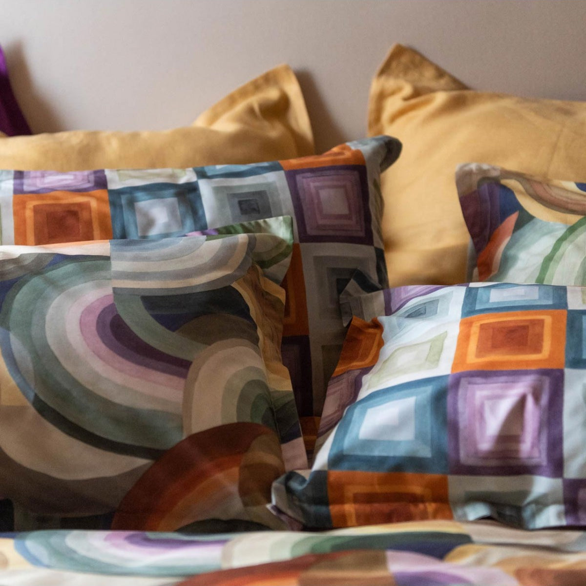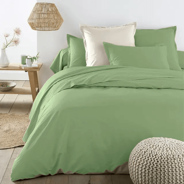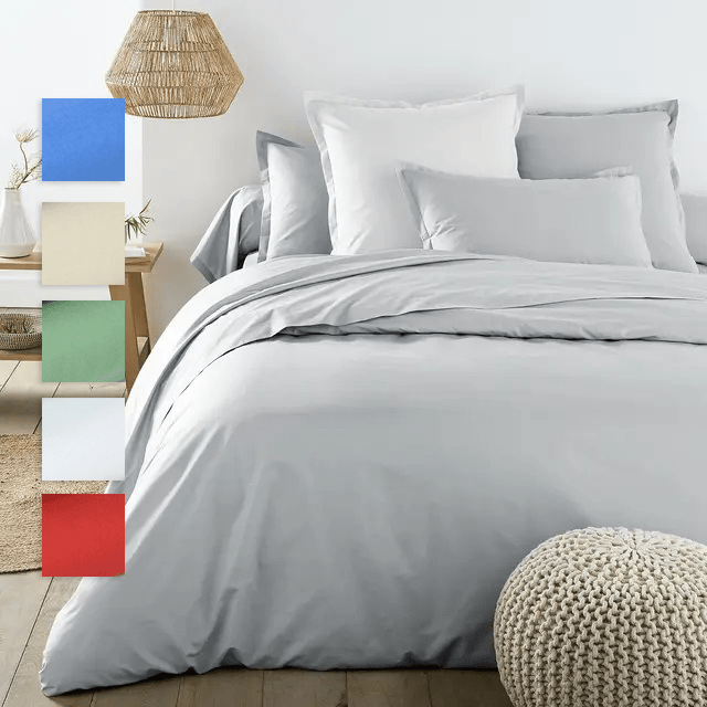 Baumwolle ist einer der am häufigsten verwendeten Stoffe für Bettbezüge , da er langlebig, atmungsaktiv und leicht zu waschen ist. Seide ist eine luxuriösere Option, die der Haut ein weiches und frisches Gefühl verleiht, ideal für warme Jahreszeiten.