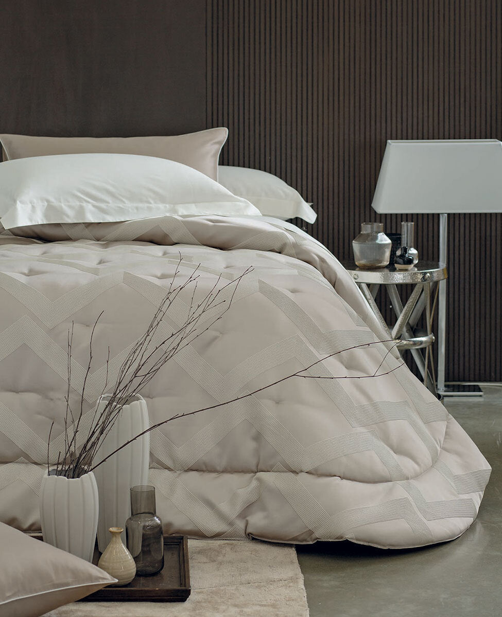 Warme und umhüllende Doppelsteppdecke mit Jacquardmuster.