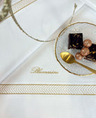 Elegante tovaglia tinta unita in misto cotone rifinita con bordo ricamato con filato in Lurex e logo Blumarine ricamato.