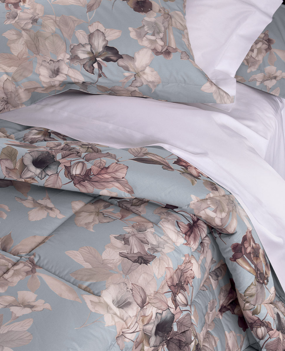 Trapunta matrimoniale in percalle di cotone stampato.
