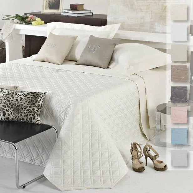 Die aus feinen Stoffen gefertigte Liu Jo-Steppdecke garantiert ein weiches Gefühl auf der Haut und eine perfekte Regulierung der Körpertemperatur während der Nacht, für eine regenerierende und regenerierende Ruhe. Darüber hinaus garantiert die Liu Jo-Steppdecke dank ihrer Widerstandsfähigkeit und Qualität eine lange Lebensdauer und einfache Pflege. Es ist möglich, die gesteppte Tagesdecke von Liu Jo mit passenden Laken mit Jacquardwebung oder einfarbiger Baumwolle zu kombinieren.