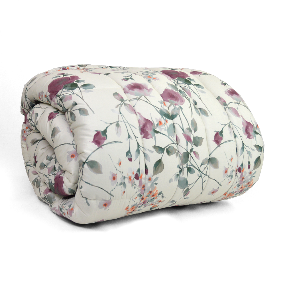 Wunderschöne Winterdecke aus reinem Baumwollsatin mit Blumendruck in romantischen und modernen Tönen