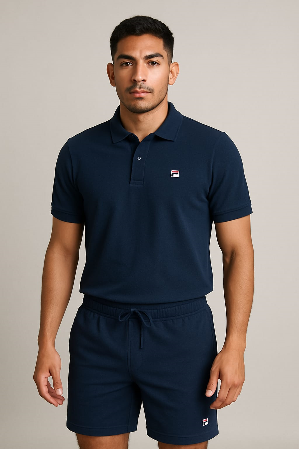 Scopri il perfetto equilibrio tra comfort e stile con questo completo da uomo firmato FILA, composto da una polo bianca con dettagli a contrasto e pantaloncini blu con bande laterali. La polo in cotone leggero offre una vestibilità regolare con colletto e maniche rifiniti da eleganti righe rosse, nere e bianche, ideali per un look sportivo ma curato. Gli shorts, realizzati in tessuto tecnico traspirante, assicurano massima libertà di movimento e comfort in ogni occasione, dallo sport al tempo libero. Rifiniti con l’iconico logo FILA, questo set è un must-have per l’uomo dinamico e attento allo stile.