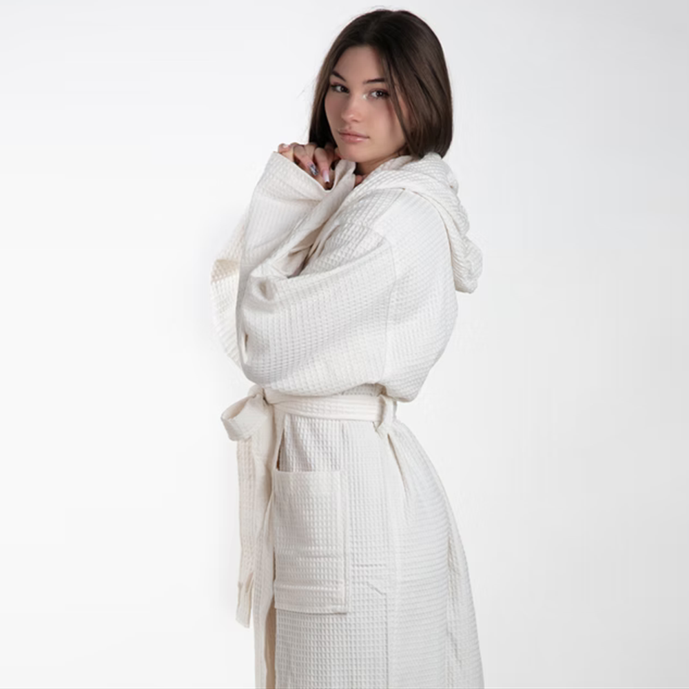 Accappatoio in nido d’ape unisex leggero e traspirante, ideale per chi cerca comfort e praticità dopo la doccia, in piscina o in viaggio. Realizzato in cotone di alta qualità, garantisce un’elevata capacità di assorbimento e una rapida asciugatura, mantenendo la pelle fresca e asciutta.