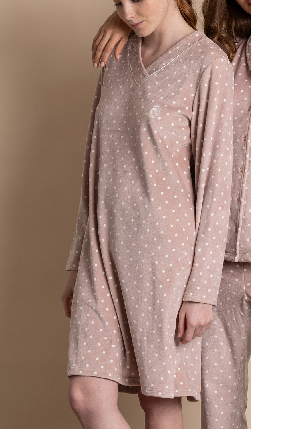 Elegante, calda e confortevole, questa camicia da notte invernale firmata Admas è realizzata in morbido velour, un tessuto soffice e vellutato che avvolge la pelle con una piacevole sensazione di calore. Il design femminile e raffinato unisce praticità e stile, rendendola perfetta per affrontare le serate più fredde con comodità senza rinunciare all’eleganza.