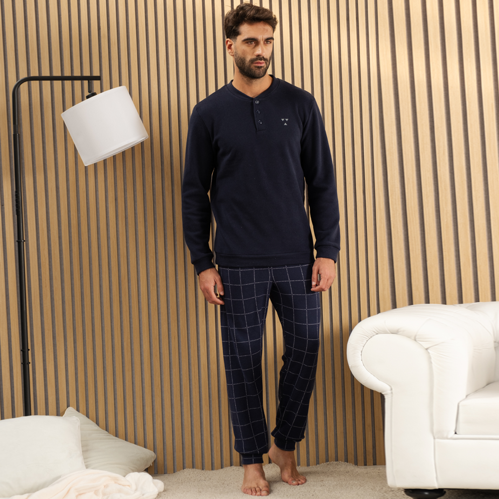 Pigiama invernale Uomo in caldo e morbido Punto Milano ,Pigiama casual ed elegante per le notti piu fredde.