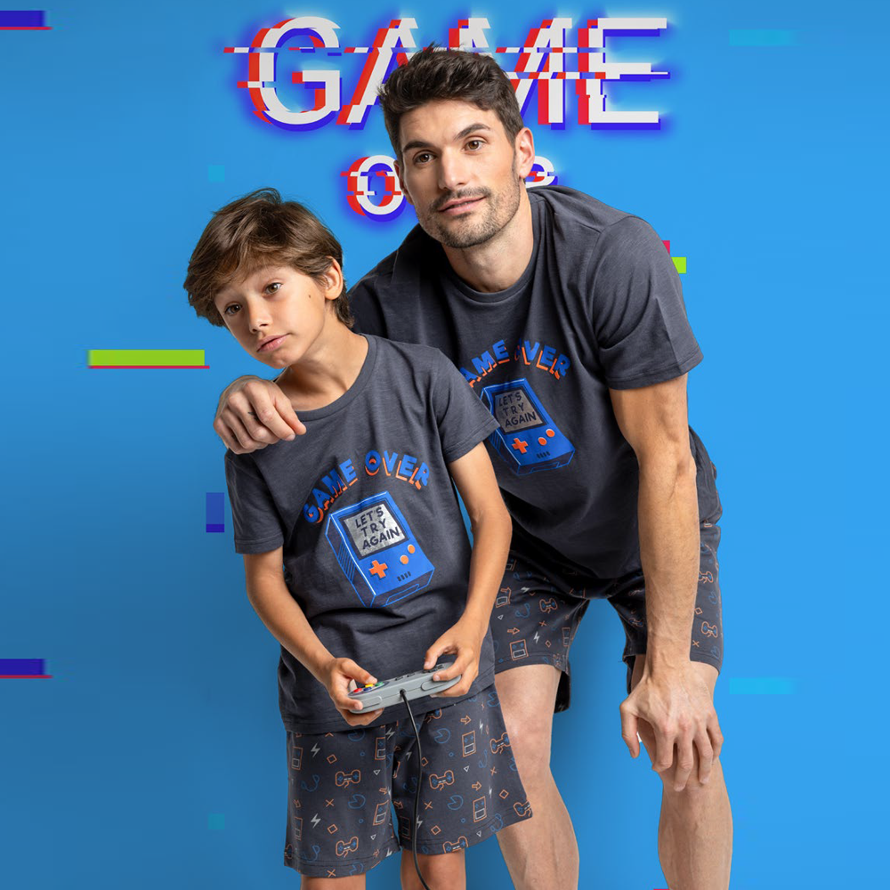 Pigiama abbinato uomo bambino estivo in cotone , maglia manica corta e pantaloncino corto