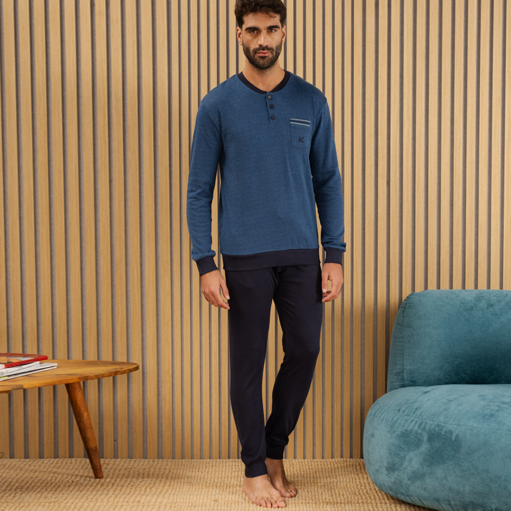 Goditi notti di puro comfort con il pigiama in caldo cotone, il compagno ideale per la stagione fredda. Realizzato in cotone di alta qualità con trattamento termico, questo pigiama offre una morbidezza naturale e un calore avvolgente senza rinunciare alla traspirabilità.