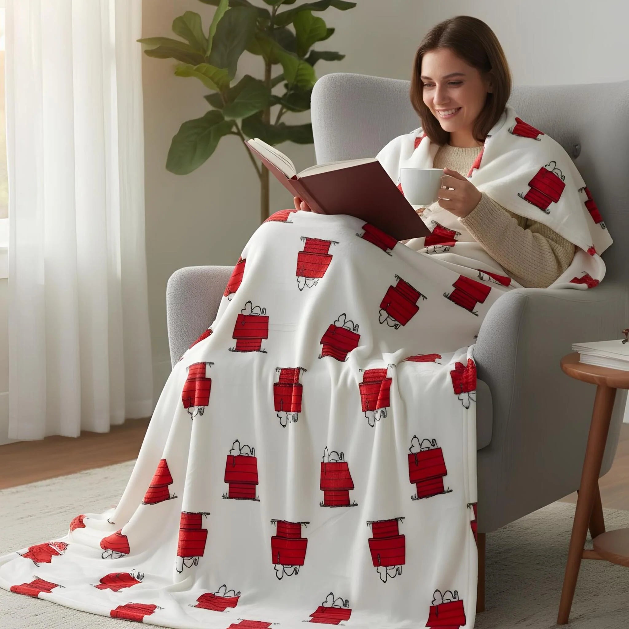 Coperta stampata con Snoopy su entrambi i lati in tessuto di peluche.