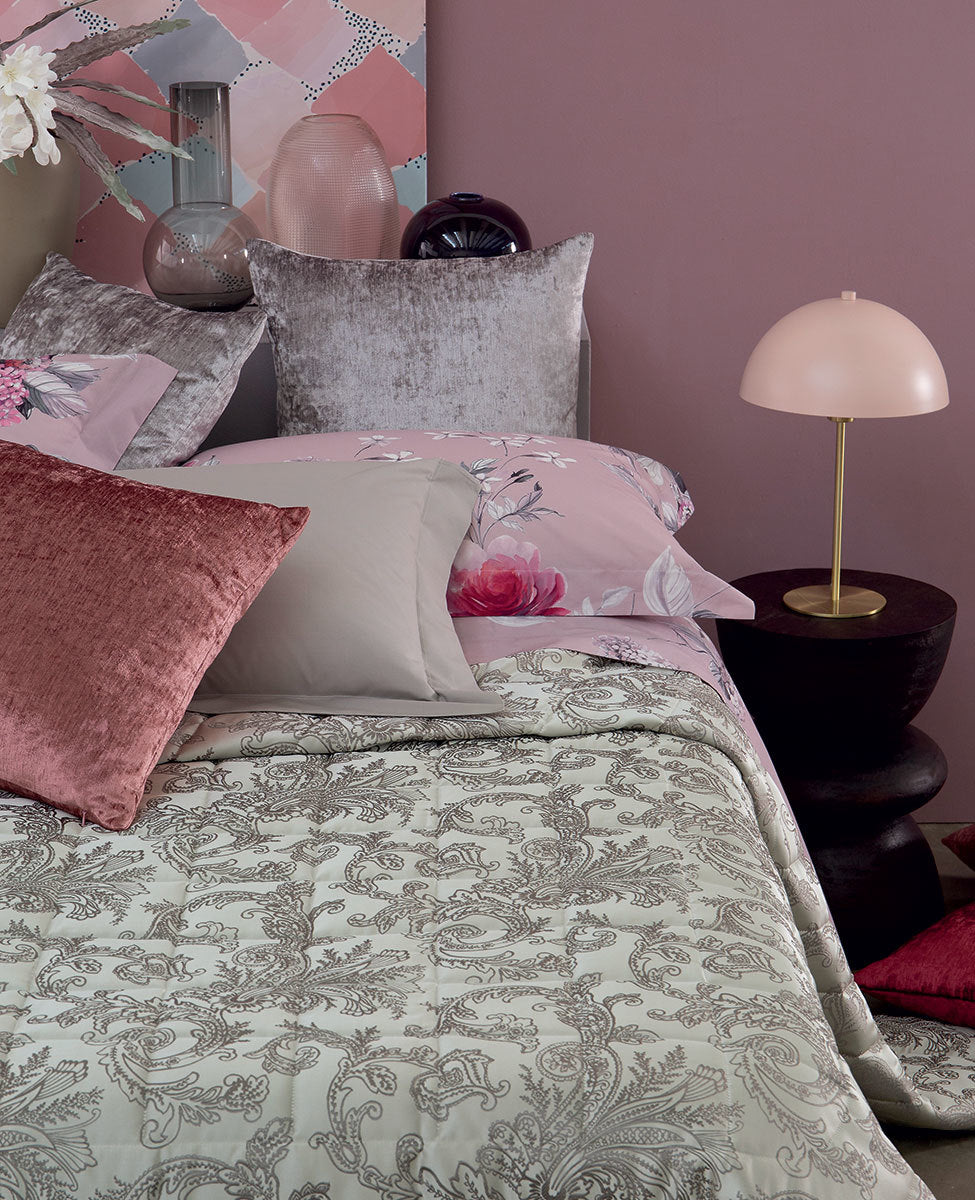 Copriletto trapuntato matrimoniale con disegno jacquard.