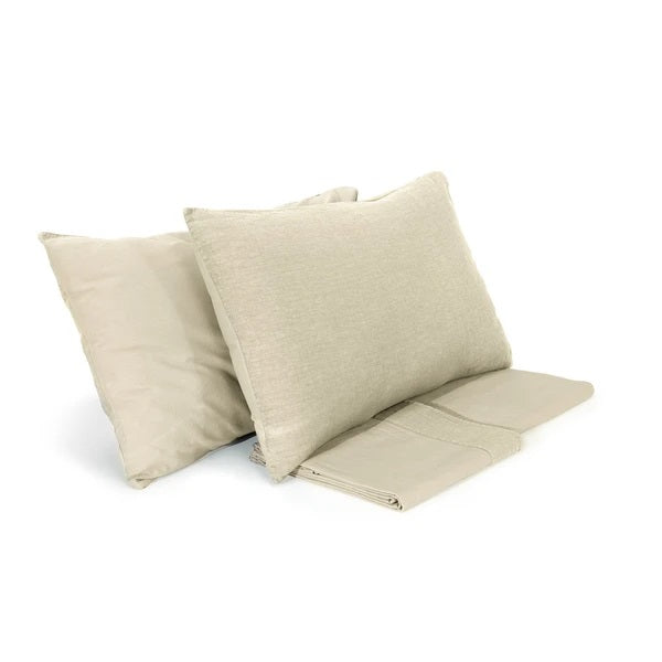 Bianco Perla - Completo Lenzuola Cotone e Lino StoneWashed No Stiro - Loira