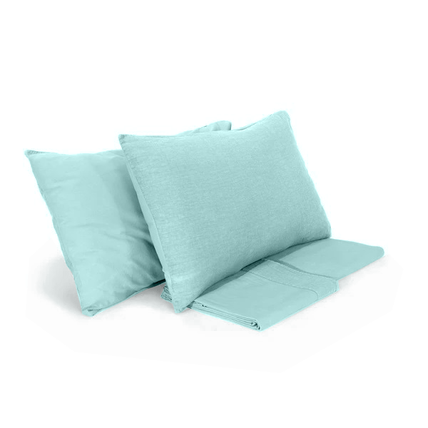 Splendido Completo di Lenzuola in Cotone StoneWash No Stiro con bordo in Lino sempre StoneWash no stiro.