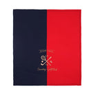 Plaid bicolor blu e rosso per gli appassionati dello sport. Realizzato in morbido pile con ricami in lana realizzati con la tecnica Cornely. Le applicazioni in finta pelle aggiungono un tocco originale. Perfetto per le serate invernali, questo plaid tiene caldo mentre segui la tua squadra del cuore o semplicemente mentre ti rilassi.