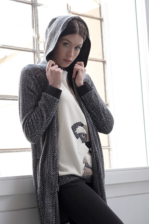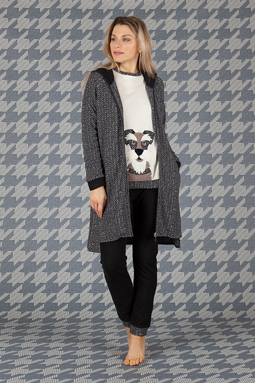 6M94816 Vestaglia donna invernale in punto milano garzato tinto filoa resca geometriche.